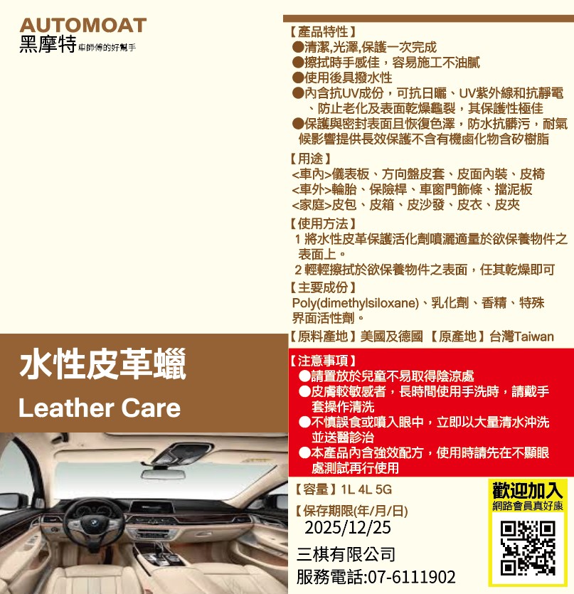 ●內含抗UV成份,可抗日曬、UV紫外線和抗靜電、防止老化及表面乾燥龜裂,其保護性極佳保護與密封表面且恢復色澤,防水抗髒污,耐氣候影響提供長效保護不含有機鹵化物含矽樹脂
